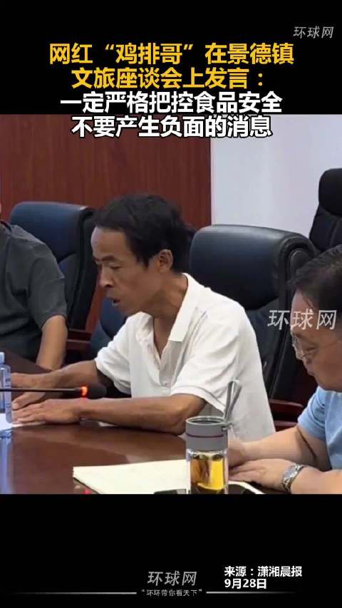 9月28日,“鸡排哥”李俊永在江西景德镇文旅推广座谈会上发言,“马上就是国庆了,我们工作的重心,严格把控食品的安全,把控卫生问题”。